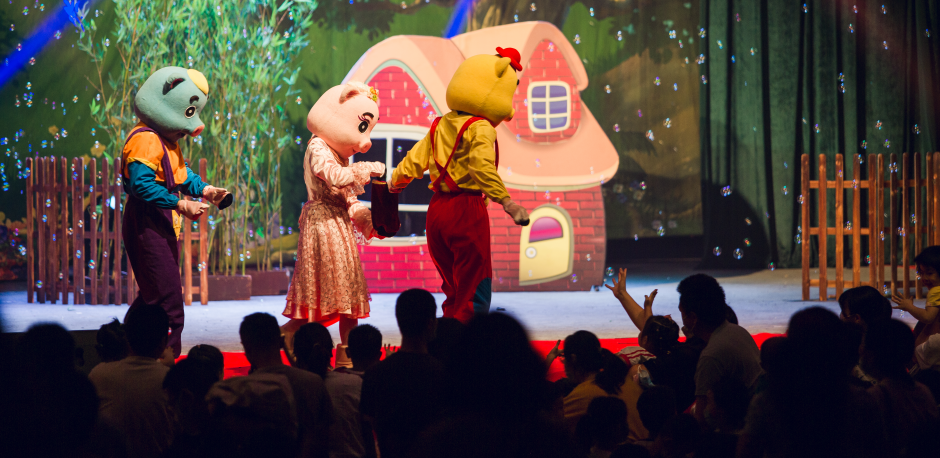 由于亲子剧场本来就是提供一个交流沟通的平台,台上与台下是互动的,在大部分的人偶剧中,编剧都会设专门的情节让小朋友参与到演出中。所以,在亲子剧场,演员经常会跑到观众席中,这一环节并非即兴的,而是刻意编排的,通过这个环节演员把剧情融到观众中,调动起孩子的积极性、促进孩子的想象力。