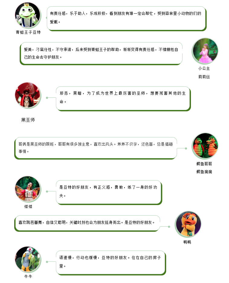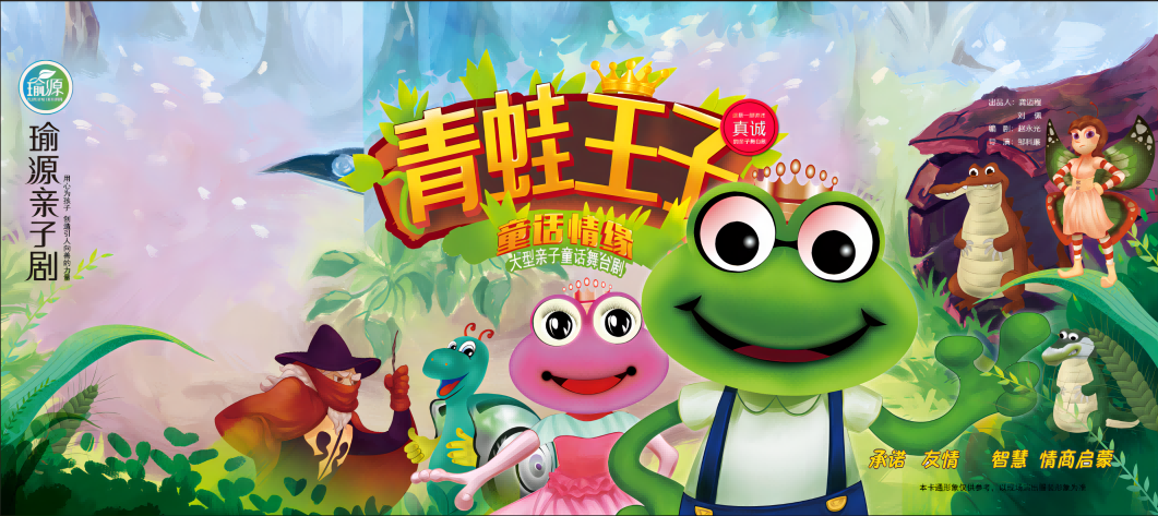 《青蛙王子-童话情缘》亲子舞台剧由广州瑜源文化传播有限公司创作、出品。剧目改编自格林童话故事《青蛙王子》,讲述的是一个任性的小公主因为不守承诺,没有给青蛙王子一个真诚的吻,导致自己也变成了青蛙。而乐观积极向上的青蛙王子,面对逆境却不屈不挠,两只青蛙最后用团结友爱一起解除了魔法!剧目以“友情与团结”为主题,故事蕴含“平等、诚信、友善”的思想,向孩子们传达出积极向上的正能量。熟悉的童话背景,不同的童话表述,故事情节丰富有趣,是一部大人小孩都会看得津津有味的经典童话剧目。