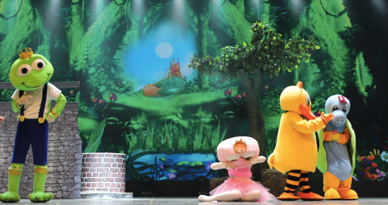 (互动:青蛙王子邀请小朋友一起,举起手中的荧光棒,召唤光明小精灵,为公主的小金球汇聚更多阳光。大朋友小朋友们,进场时,记得领取荧光棒哦!)