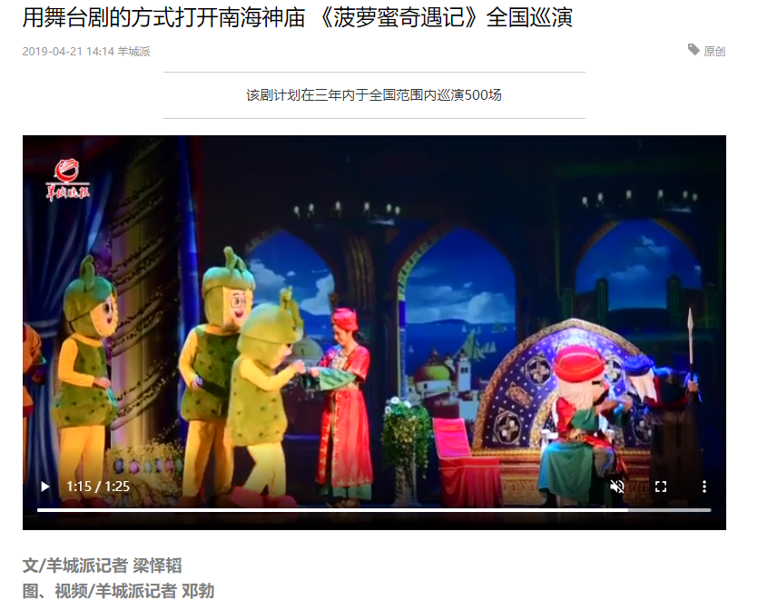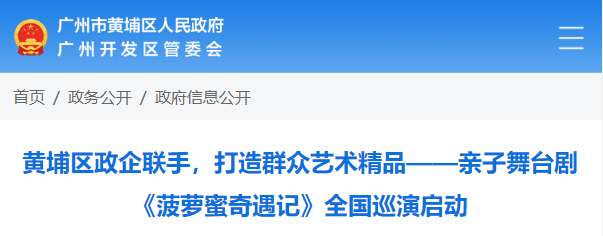 亲子舞台剧《菠萝蜜奇遇记》是黄埔区创新文化馆、图书馆总分馆政企合作模式后,在公共文化领域探索的又一个政企合作模式,由黄埔区文化馆与企业合作出品。该剧目自从首演后,南海神庙的海丝文化故事通过艺术化的舞台呈现活了起来,使优秀传统历史,受到家长和孩子们的欢迎,成为引爆一时备受瞩目的合家欢亲子舞台剧。