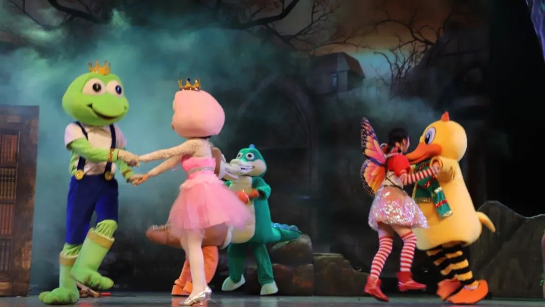 4、最后与黑巫师的打斗中,关键时刻需要现场小朋友们扮演小青蛙(观众带上青蛙面具),模仿青蛙的叫声。